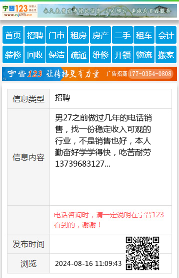 男27之前做过几年的电话销售,找一份稳定收入可观的行业,不是销售也好,本人勤奋好学学得快,吃苦耐劳13739683127