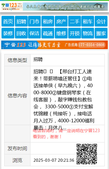 招聘 【邢台打工人速来!带薪唠嗑还管住】①电话接单侠(早九晚六),4000-8000②键盘钢琴家(在线客服),敲字赚钱包教包会, 3300-5000③支付宝解忧锦鲤(纯接听),接电话月入过万,4000-12000福利暴击:月休八天+宿舍空调+五险一金配齐,8小时工作制,氛围好急招暗号:20-35岁青年,带毕业证速联:16633966915/17633190052 聘 |