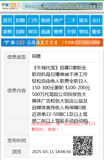《牛城代驾》招募 兼职全职司机每日爆单接不停工作轻松自由免入职费全职日入150-300元兼职 $100-200元500万代驾险公司投放各大媒体广告和各大饭店公益及自媒体宣传收入有保障 就近派单22-50周C1及以上驾照二年以上驾龄手动自动档熟练驾驶0319-2620202;17732914321(同微)公司电车租赁免押金👉🏻不用个人推广宣传👉🏻公司有专业宣传人员👉🏻无强制要求👉🏻事少👉🏻没有潜规则👉🏻无新老司机之分👉🏻就近派单👉🏻每一单现收益👉🏻无提现费👉🏻邢台6大饭店合作,每天单不停,每月带领司机们团建,轻轻松松挣大钱,牛城代驾成立6年,欢迎您的加入。邢台人自己的代驾公司就是有保障👍🏻👍🏻👍🏻 |