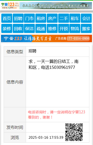 求,一天一算的日结工,南和区,电话15030961977