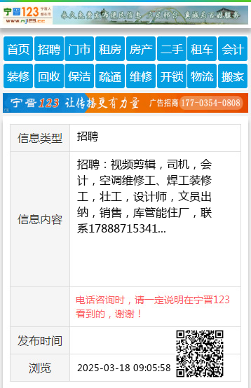 招聘:视频剪辑,司机,会计,空调维修工、焊工装修工,壮工,设计师,文员出纳,销售,库管能住厂,联系17888715341