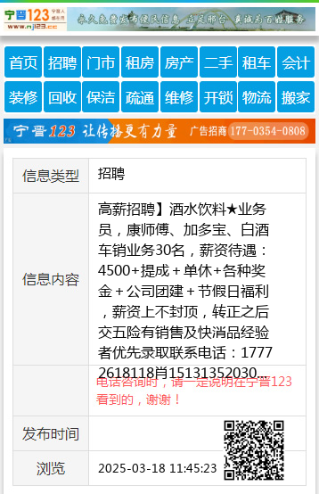 高薪招聘】酒水饮料★业务员,康师傅、加多宝、白酒车销业务30名,薪资待遇:4500+提成+单休+各种奖金+公司团建+节假日福利,薪资上不封顶,转正之后交五险有销售及快消品经验者优先录取联系电话:17772618118肖15131352030刘公司地址:守敬南路邢台第一农业生产资料总公司大院里-聚宽商贸