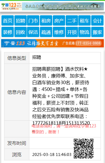 招聘高薪招聘】酒水饮料★业务员,康师傅、加多宝、白酒车销业务30名,薪资待遇:4500+提成+单休+各种奖金+公司团建+节假日福利,薪资上不封顶,转正之后交五险有销售及快消品经验者优先录取联系电话:17772618118肖15131352030刘公司地址:守敬南路邢台第一农业生产资料总公司大院里-聚宽商贸 聘