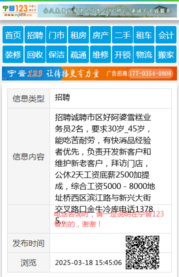 招聘诚聘市区好阿婆雪糕业务员2名,要求30岁_45岁,能吃苦耐劳,有快消品经验者优先,负责开发新客户和维护新老客户,拜访门店,公休2天工资底薪2500加提成,综合工资5000-8000地址桥西区滨江路与新兴大街交叉路口金牛冷库电话13785900200 聘 【电话咨询时,请一定说明在邢台123看到的,谢谢!】 |