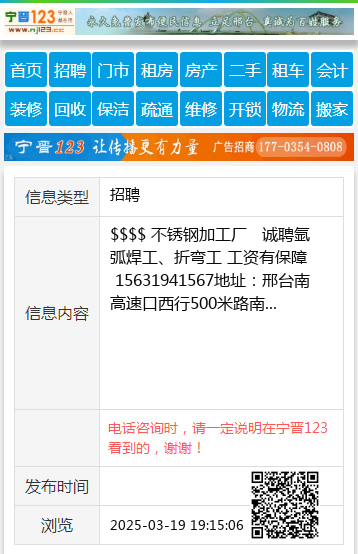 $$$$ 不锈钢加工厂 诚聘氩弧焊工、折弯工 工资有保障 15631941567地址:邢台南高速口西行500米路南