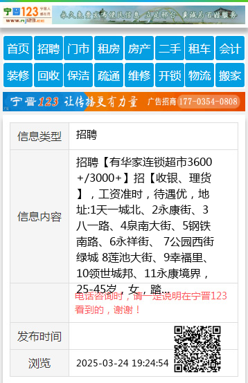 招聘【有华家连锁超市3600+/3000+】招【收银、理货】,工资准时,待遇优,地址:1天一城北、2永康街、3八一路、4泉南大街、5钢铁南路、6永祥街、 7公园西街绿城 8莲池大街、9幸福里、10领世城邦、11永康境界,25-45岁,女,踏实勤恳。时间:7点-15点,15点-23点。公休2天 3000/3600.人力:19331930216 聘 |