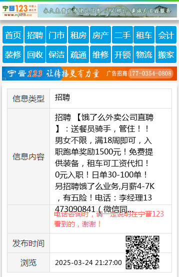 招聘 【饿了么外卖公司直聘】:送餐员骑手,管住!!男女不限,满18周即可,入职跑单奖励1500元!免费提供装备,租车可工资代扣!0元入职!日单30-100单!另招聘饿了么业务,月薪4-7K,有五险!电话:李经理13473090841(微信同号) 聘
