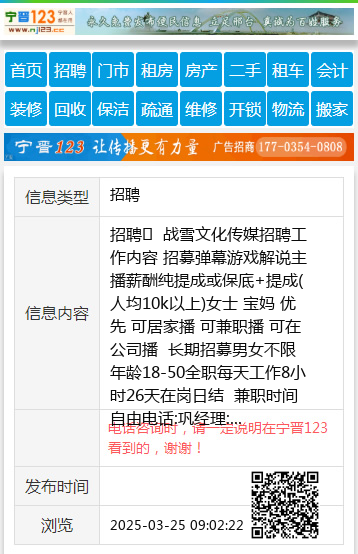 招聘 战雪文化传媒招聘工作内容 招募弹幕游戏解说主播薪酬纯提成或保底+提成(人均10k以上)女士 宝妈 优先 可居家播 可兼职播 可在公司播 长期招募男女不限年龄18-50全职每天工作8小时26天在岗日结 兼职时间自由电话:巩经理:13229071665(微信同号)尹经理:15612955768(微信同号)地址:邢台市建设路众友家居5楼E-013 聘 |