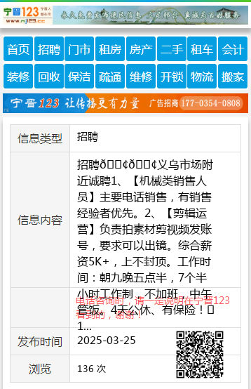 招聘📢📢义乌市场附近诚聘1、【机械类销售人员】主要电话销售,有销售经验者优先。2、【剪辑运营】负责拍素材剪视频发账号,要求可以出镜。综合薪资5K+,上不封顶。工作时间:朝九晚五点半,7个半小时工作制,不加班,中午管饭。4天公休、有保险!☎19263192515同微 聘