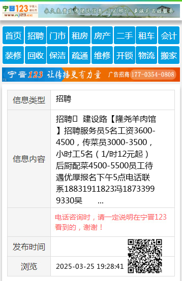 招聘 建设路【隆尧羊肉馆】招聘服务员5名工资3600-4500,传菜员3000-3500,小时工5名(1/时12元起)后厨配菜4500-5500员工待遇优厚报名下午5点电话联系18831911823冯18733999330吴 聘