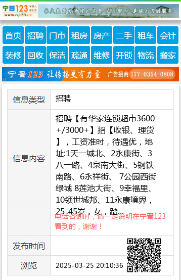 招聘【有华家连锁超市3600+/3000+】招【收银、理货】,工资准时,待遇优,地址:1天一城北、2永康街、3八一路、4泉南大街、5钢铁南路、6永祥街、 7公园西街绿城 8莲池大街、9幸福里、10领世城邦、11永康境界,25-45岁,女,踏实勤恳。时间:7点-15点,15点-23点。公休2天 3000/3600.人力:19331930216 聘 |