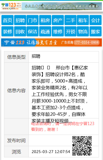 招聘 邢台市【惠亿家装饰】招聘设计师2名,酷家乐即可,5000+高提成,家装业务精英2名,有2年以上工作经验优先,男女不限月薪3000-10000上不封顶,基本工资加2-3个点提成,要求年龄20-45岁,自媒体家装主播及短视频运行2名,月薪5000+提成,要求有1年以上有关装修直播经验,年龄20-35岁,性别:女,工作地址:邢台市襄都区泉北大街新眼科医院西邻,联系电话:16632967999张经理。 聘 |