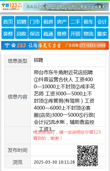 电话咨询时,请一定说明在邢台123看到的,谢谢! |