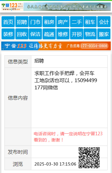 求职工作会手把焊,会开车工地杂活也可以,15094499177同微信
