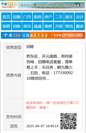 桥东区,开元南路,邢州装饰城,招聘电话客服,简单易上手,无任务,朝九晚六,五险,电话:17733009210微信同号