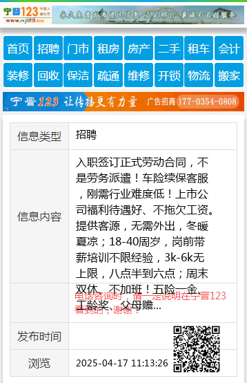 入职签订正式劳动合同,不是劳务派遣!车险续保客服,刚需行业难度低!上市公司福利待遇好、不拖欠工资。提供客源,无需外出,冬暖夏凉;18-40周岁,岗前带薪培训不限经验,3k-6k无上限,八点半到六点;周末双休、不加班!五险一金、工龄奖、父母赡养津贴、晋升空间、带薪休假等福利多多。开发区河北工业大学科技园 /桥西居然之家。欢迎咨询15132997316(同微) |