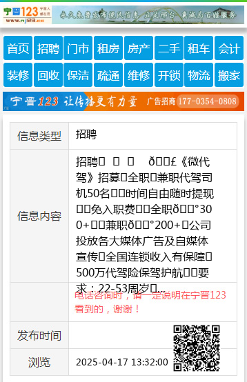 招聘 📣《微代驾》招募✤全职✤兼职代驾司机50名◗✅时间自由随时提现◗✅免入职费◗✅全职💰300+◗✅兼职💰200+◗公司投放各大媒体广告及自媒体宣传◗全国连锁收入有保障◗500万代驾险保驾护航◗✅要求:22-53周岁◗C1及以上驾照◗三年以上驾龄◗手动℗自动熟练驾驶◗详询0319-3333304;15612970708(同微) ✅另聘人事2名(有工作经验) 聘 |
