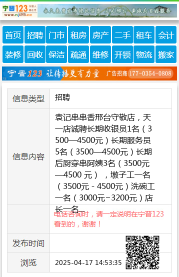 袁记串串香邢台守敬店,天一店诚聘长期收银员1名(3500—4500元)长期服务员5名(3500—4500元)长期后厨穿串阿姨3名(3500元—4500 元) ,墩子工一名(3500元-4500元)洗碗工一名(3000元−3200元)店长一名(工资面议)以上人员包吃包住晋升空间大,电话☎️13930915616(微信同步)加入我们团队! |