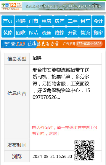 邢台市安能物流诚招带车送货司机,按票结算,多劳多得,另招聘客服,工资面议,好望角保税物流中心,15097970526