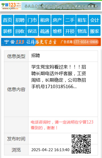 学生党宝妈看过来!!!招聘长期电话外呼客服,工资周结,长期稳定,公司急招手机号17103185166