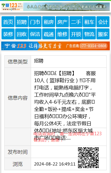 招聘📣【招聘】 客服10人(篮球鞋行业)‼️不用打电话,能熟练电脑打字,工作时间早九点晚六💰平均收入4-6千元左右,底薪➕全勤+饭补+提成+奖金+节日福利👉办公环境好,每月公休4天,法定节假日休🏣地址:桥东区恒大城市广场☎️电话:13290696603 :17503371699 聘