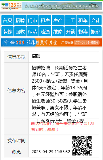 招聘招聘:长期话务招生老师10名,坐班,无责任底薪2500+提成+绩效+奖金+月休4天+法定,年龄18-55周,有无经验均可;兼职话务招生老师30-50名(大学生暑假兼职,男女不限,年龄不限,有无经验均可),坐班,日薪80元/天 +奖金+提成,月结;邢老师15203296570,任老师17733904703;地点:邢台市信都区冀中工程技师学院育才北路29号(校企) 聘 |