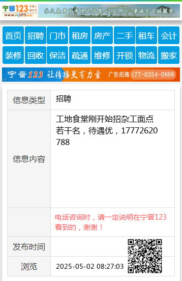 工地食堂刚开始招杂工面点若干名,待遇优,17772620788