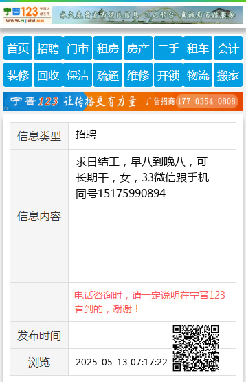 求日结工,早八到晚八,可长期干,女,33微信跟手机同号15175990894