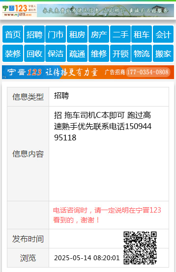 招 拖车司机C本即可 跑过高速熟手优先联系电话15094495118