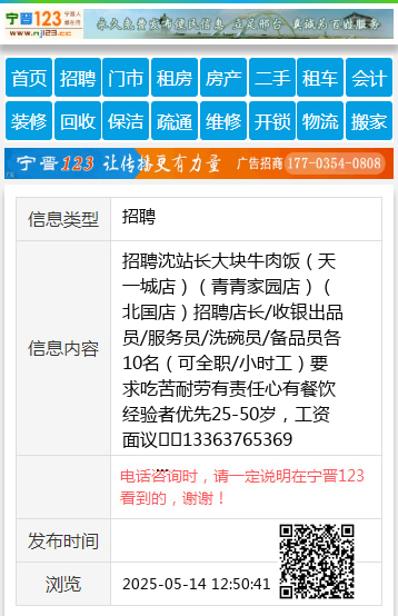 招聘沈站长大块牛肉饭(天一城店)(青青家园店)(北国店)招聘店长/收银出品员/服务员/洗碗员/备品员各10名(可全职/小时工)要求吃苦耐劳有责任心有餐饮经验者优先25-50岁,工资面议☎️13363765369 聘
