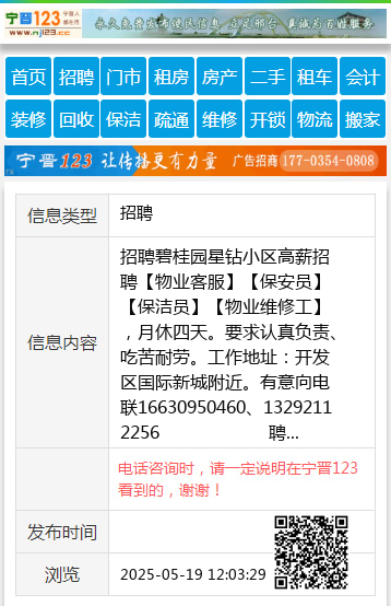 招聘保洁 55 岁以内有政府工作优先,地址冶金北路,联系人李经理 15803197333