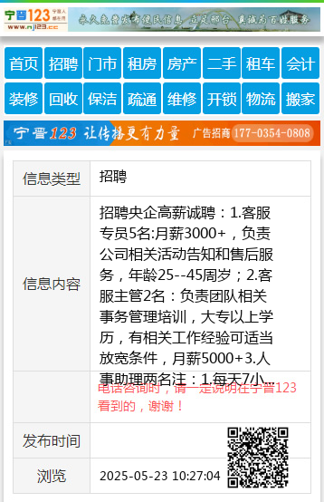 招聘央企高薪诚聘:1.客服专员5名:月薪3000+,负责公司相关活动告知和售后服务,年龄25--45周岁;2.客服主管2名:负责团队相关事务管理培训,大专以上学历,有相关工作经验可适当放宽条件,月薪5000+3.人事助理两名注:1.每天7小时工作制,周末双休 2.养老医疗保障 3.系统培训机制,晋升空间大;国企招聘一辈子有保障李经理:15830726364 聘 |