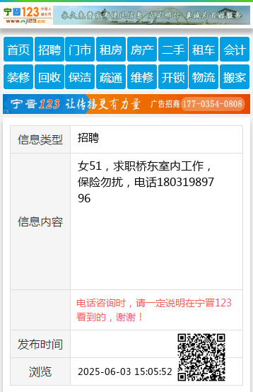 女51,求职桥东室内工作,保险勿扰,电话18031989796