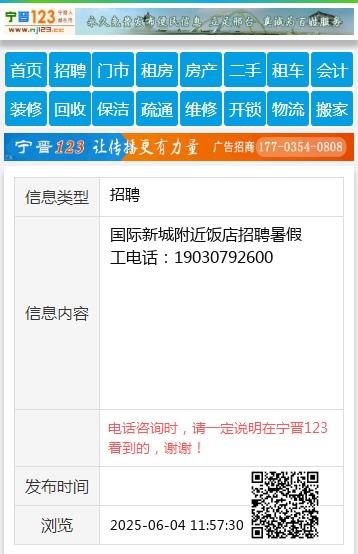国际新城附近饭店招聘暑假工电话:19030792600