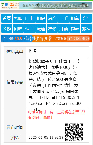 招聘招聘长期工 体育用品【客服销售】 底薪1000元起提2个点提成日薪日结,底薪月结)月保1500 最少多劳多得 (工作内容加微信 发朋友圈 介绍产品 )每周日休息, 工作时间上午9.30点-11.30 点 下午2.30点到5点30 工作地点:滨江路旁边 碧桂园附近 只要桥西的。 电话同微信☎18333901333 聘 |