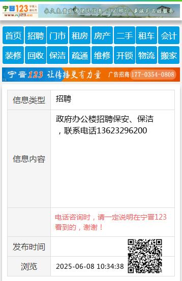 政府办公楼招聘保安、保洁,联系电话13623296200
