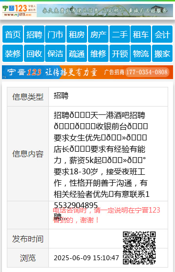 招聘🌟天一港酒吧招聘🌟💛收银前台💙要求女生优先✌🏻💛店长💙要求有经验有能力,薪资5k起✌🏻💰要求18-30岁,接受夜班工作,性格开朗善于沟通,有相关经验者优先☎有意联系15532904895 聘