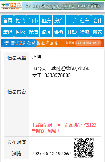 邢台天一城附近找包小笼包女工18333978885