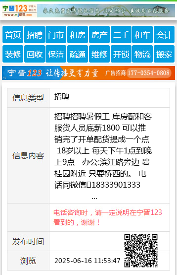 招聘招聘暑假工 库房配和客服货人员底薪1800 可以推销完了开单配货提成一个点 18岁以上 每天下午1点到晚上9点 办公:滨江路旁边 碧桂园附近 只要桥西的。 电话同微信☎18333901333 聘