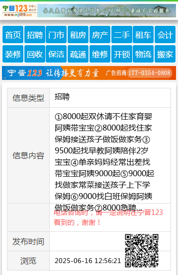 ①8000起双休请不住家育婴阿姨带宝宝②8000起找住家保姆接送孩子做饭做家务③9500起找早教阿姨陪伴2岁宝宝④单亲妈妈经常出差找带宝宝阿姨9000起⑤9000起找做家常菜接送孩子上下学保姆⑥9000找白班保姆阿姨做饭做家务⑦8000急聘护工阿姨照顾88岁老人⑧10000起五星级的月子中心急招催乳师⑨10000起高端月子中心急招月嫂买社保⑩10000急招别墅住家保姆联系电话:13930982653、13931931607、1511002988微信同号工作地址:信都区中华大街168号(原邢台老一中对面) |