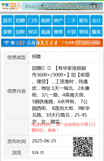 招聘 【有华家连锁超市3600+/3000+】招【收银、理货】,工资准时,待遇优,地址:1天一城北、2永康街、3八一路、4泉南大街、5钢铁南路、6永祥街、 7公园西街、 8莲池大街、9新华北路、10太行路北,25-45岁,女,踏实勤恳。时间:7点-15点,15点-23点。公休2天 3000/3600.人力:16631952215 聘 |