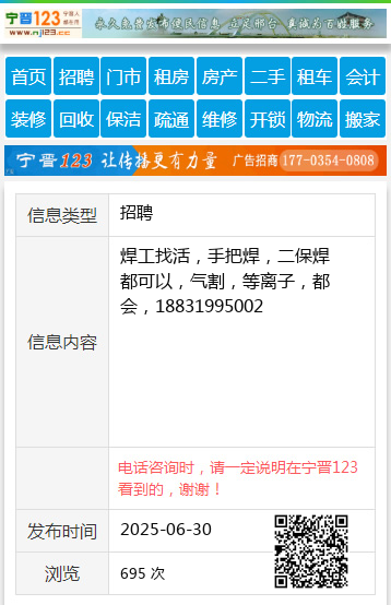 男35岁,C1驾照,会手把焊,有广告门头安装经验。吃苦耐劳,接受夜班,求邢台本地稳定工作。19213195980v同步