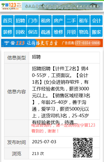 招聘招聘【计件工2名】男40-55岁,工资面议。【会计1名】(女)会进销存软件,有工作经验者优先,薪资3000元以上。【销售区域经理3名】,年龄25-40岁,善于沟通,爱学习,薪资5000元以上,送货司机3名,25-45岁有经验者优先,待遇优厚。要长期。桥东地址:邢台市襄都区祝村镇任住村桥西地址:邢台市信都区南石门镇皇台底中学附近电话13730093919 聘 |