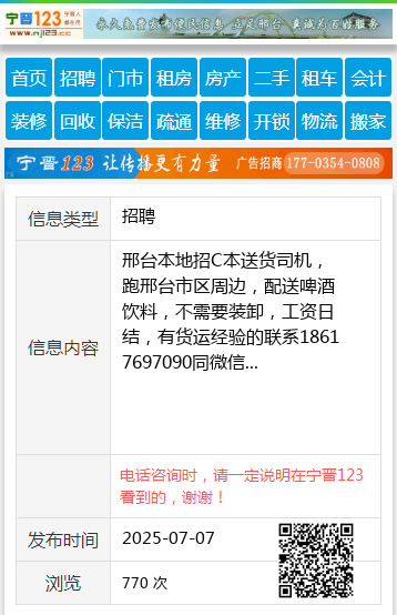 邢台本地招C本送货司机,跑邢台市区周边,配送啤酒饮料,不需要装卸,工资日结,有货运经验的联系18617697090同微信