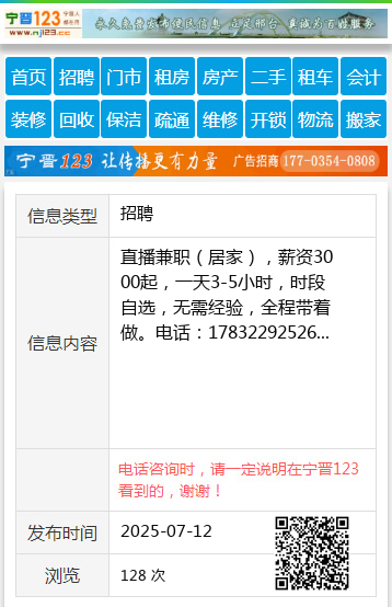 直播兼职(居家),薪资3000起,一天3-5小时,时段自选,无需经验,全程带着做。电话:17832292526