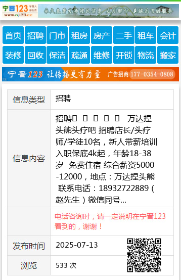 招聘 万达捏头熊头疗吧 招聘店长/头疗师/学徒10名,新人带薪培训入职保底4k起,年龄18-38岁 免费住宿 综合薪资5000-12000,地点:万达捏头熊 联系电话:18932722889(赵先生)微信同号 聘