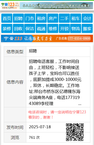 电话咨询时,请一定说明在邢台123看到的,谢谢!