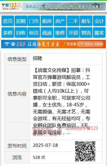【战雪文化传媒】招募:抖音官方弹幕游戏解说员,工资日结,薪资:保底3000+提成(人均10k以上),可兼职可全职,可居家可公司播,女士优先,18-45岁,无需颜值、无需才艺,无需会游戏,有无经验均可,专业孵化团队免费培训,3天掌握变现技能,长期招:魏经理15200168698(微信同)金经理15103290333(微信同)地址:襄都区万达广场锦华国际中心 |