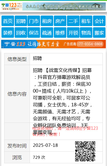 招聘 【战雪文化传媒】招募:抖音官方弹幕游戏解说员,工资日结,薪资:保底3000+提成(人均10k以上),可兼职可全职,可居家可公司播,女士优先,18-45岁,无需颜值、无需才艺,无需会游戏,有无经验均可,专业孵化团队免费培训,3天掌握变现技能,长期招:魏经理15200168698(微信同)金经理15103290333(微信同)地址:襄都区万达广场锦华国际中心 聘 |