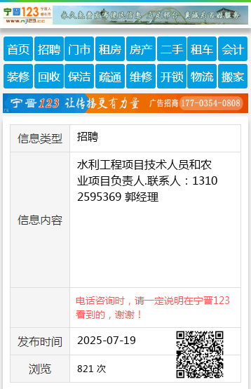 水利工程项目技术人员和农业项目负责人.联系人:13102595369 郭经理